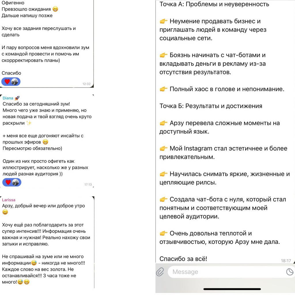 АРЗУ КАЗАРНОВСКИС. Я предприниматель с 7-летним опытом ведения бизнеса. Управляю двумя успешными бизнес-проектами – Coral Club и BNB Club, а также развиваю свой блог в IG и TG. Сейчас я запускаю интенсив для поддержки женщин-предпринимателей.